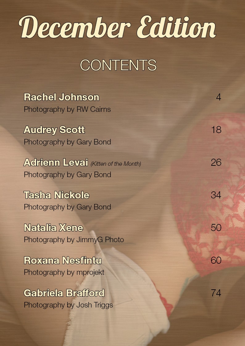 Models: Rachel Johnson, Audrey Scott, Adrienn Levai, Tasha Nickole, Natalia Xene, Roxana Nesfintu, Gabriela Brafford,