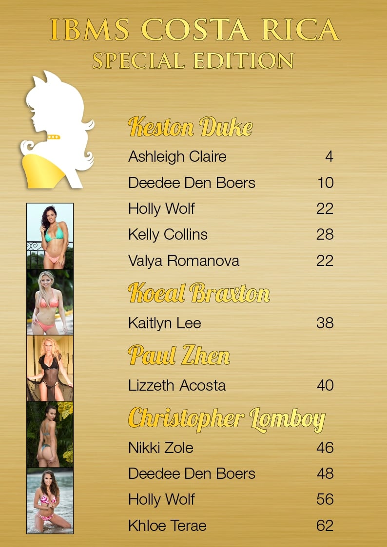 Models: Ashleigh Claire, Deedee Den Boers, Holly Wolf, Kelly Collins, Valya Romanova, Kaitlyn Lee, Lizzeth Acosta, Nikki Zole, Khloe Terae, Vanessa Lackner, Amber Boroski, Deanna Greene, Ciera Marie, Dani Word, Jody Michaela, Kylie Zamora, Mandy Evonne, Olivia Gray