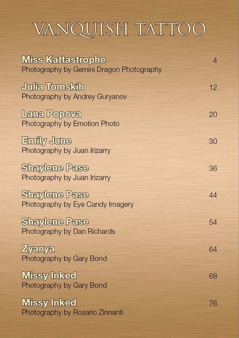 Models: Miss Kattastrophe, Julia Tomskih, Lana Popova, Emily June, Shaylene Pase, Zyanya, Missy Inked,